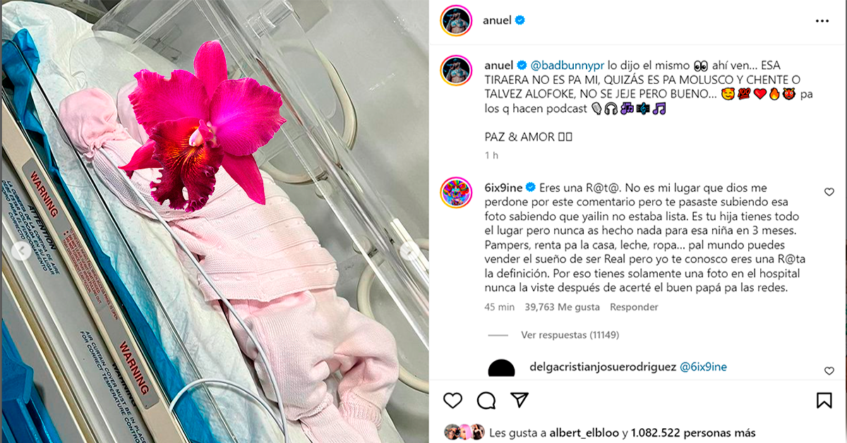 La controversia comenzó cuando Tekashi o 6ix9ine subió una foto con Cattleya en brazos, generando la atención de Anuel AA como padre de la niña.